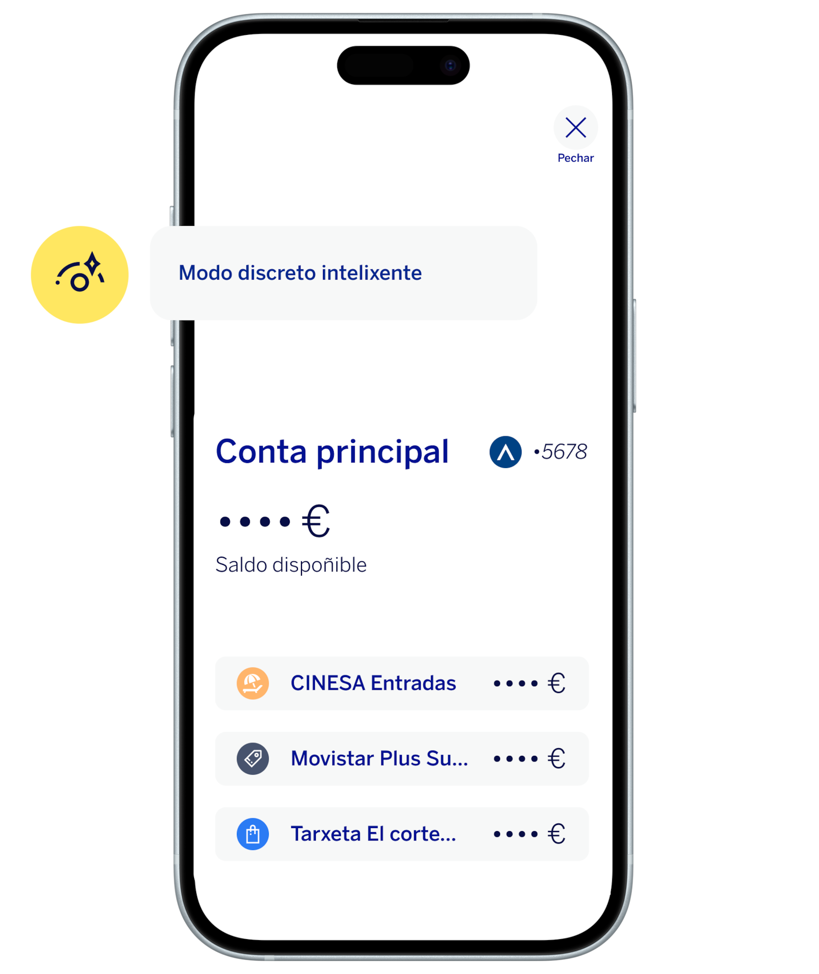 O modo discreto protexe a túa privacidade e as túas contas en calquera momento e situación, para que poidas usar a app de forma segura esteas onde estiveres.