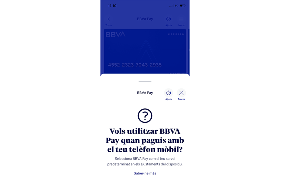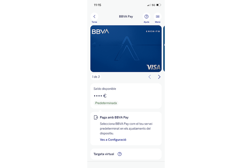 Selecciona “Pagament Mòbil BBVA Pay” a les accions de la targeta.Pas 2