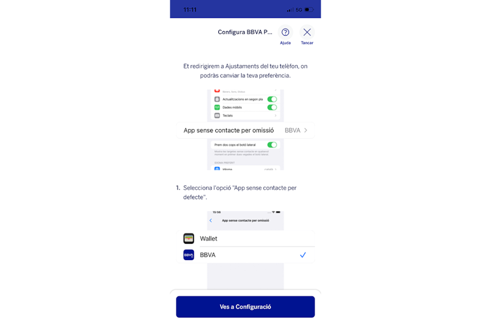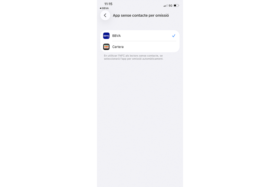 Selecciona el BBVA com a App sense contacte per defecte.Pas 8