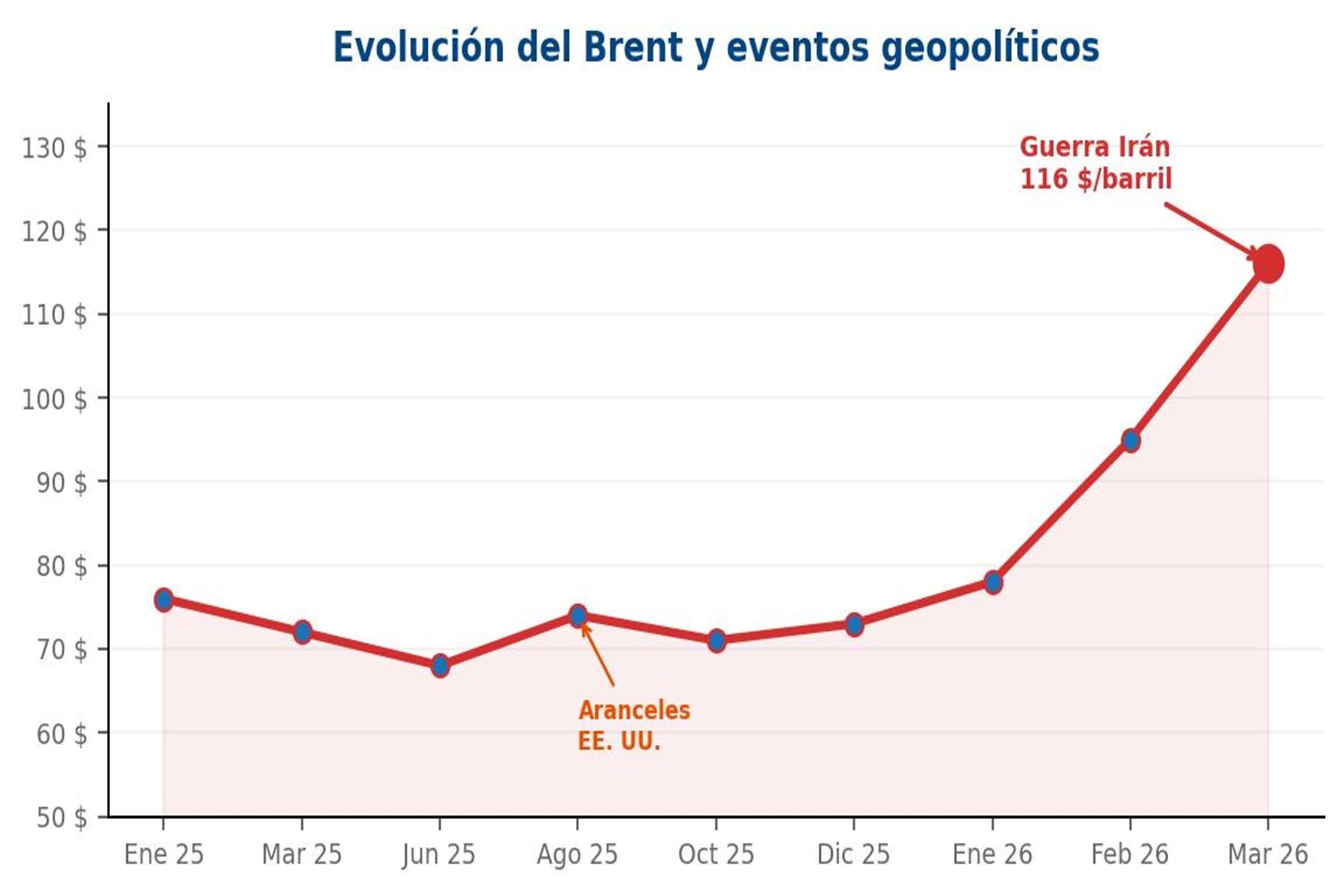 El conflicto con Irán ha puesto en jaque al estrecho de Ormuz, por donde transita el 20 % del petróleo mundial. El Brent superó los 116$ y el gas europeo se disparó un 30%, superando los 70€/MWh. Para las empresas españolas, esto se traduce en mayores costes de producción, transporte y electricidad.