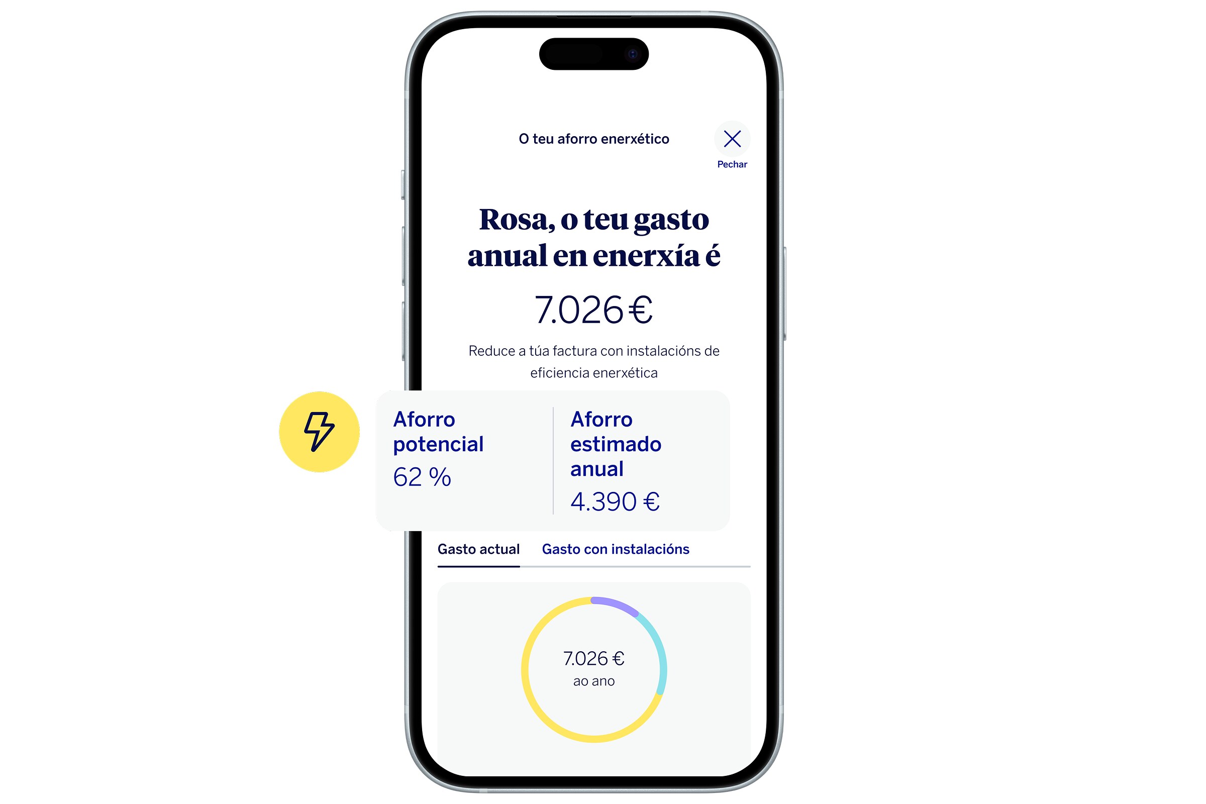 Mostrámosche canto aforrarías en luz, gas e combustible con melloras de eficiencia e ofrecémosche financiamento para facelas.